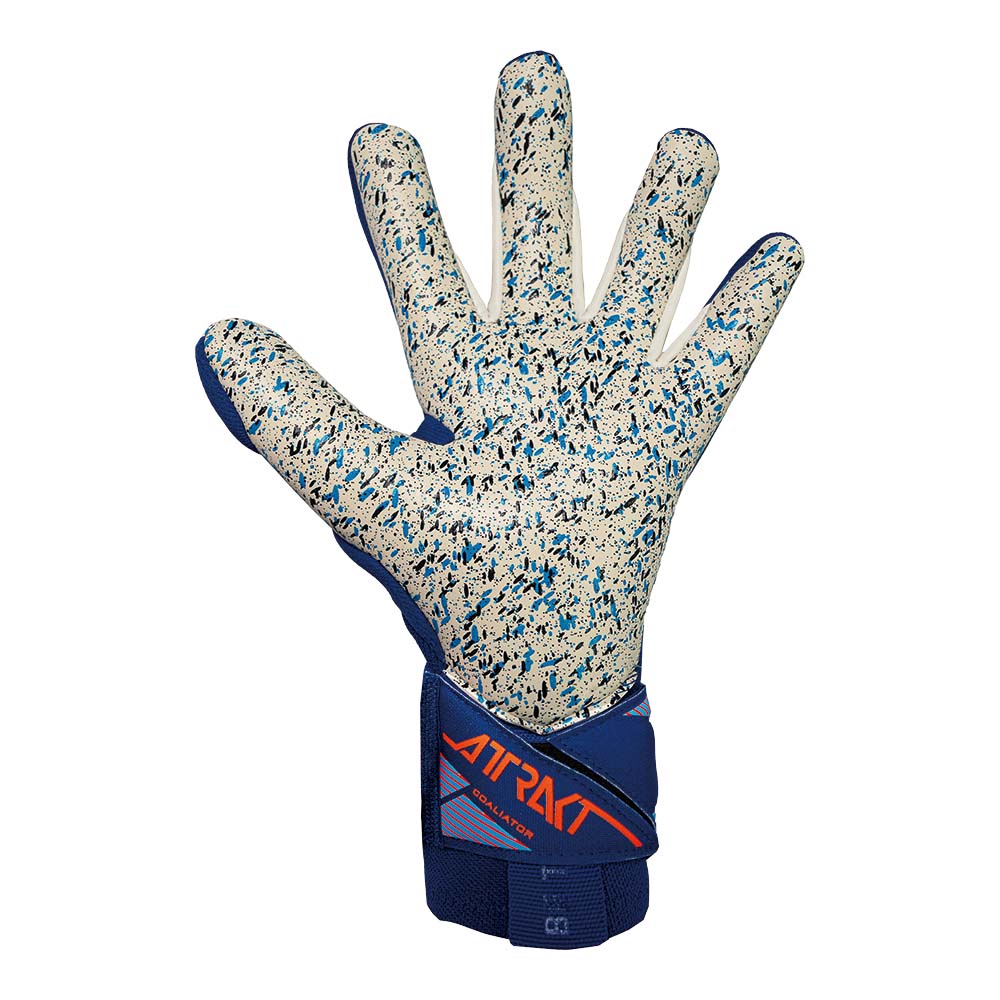 26年メインカラーである鮮やかなブルーと更に面積を拡げたホワイトパームのワールドクラスモデル。タイトなフィット感でもプルループ付きのニットカフで着脱しやすい仕様。